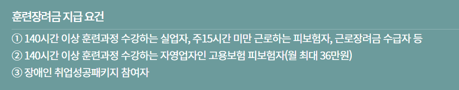 아래 지급요건 잘 확인하셔서 훈련장려금 기회도 노려보세요!